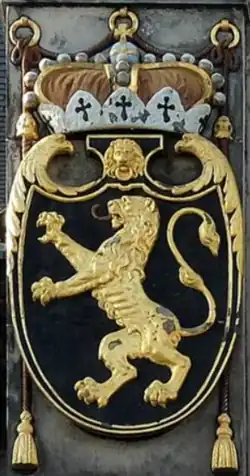 Brabantian Lion carried by Floris de Merode, Baron of Leefdael during the Funeral of Albert VII. This emblem of the dukes of Brabant is now the coat of arms of Belgium.
