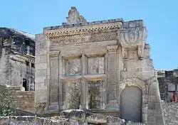 The defensive capabilities of Les Baux have always made it an attractive location for human habitation. Traces of habitation have been found and dated to 6000 BC. in the Costapéra cave which was discovered in 1928 and which houses a collective burial ground from the early Bronze Age.[7] The site was used by the Celts as a fort or oppidum around the 2nd century BC. Peripheral areas or castrum developed very early as evidenced by the Trémaïé.[8] The way from the Les Baux oppidum to the plains north of the Alpilles was by a protohistoric way through the valley of Laval and the town of Glanon which later took the name Glanum.[9]