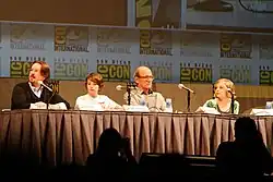 Matt Reeves, Kodi Smit-McPhee, Richard Jenkins, and Chloë Grace Moretz at Comic-Con discussing Let Me In.