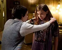 Let Me In is a 2010 romantic horror film[8] written and directed by Matt Reeves. It is a remake of the 2008 Swedish film Let the Right One In, which was based on the 2004 novel of the same name by John Ajvide Lindqvist.[9] The film stars Kodi Smit-McPhee, Chloë Grace Moretz, Elias Koteas, and Richard Jenkins. The plot follows a bullied 12-year-old boy who befriends and develops a romantic relationship with a child vampire girl in Los Alamos, New Mexico, during the early 1980s.
