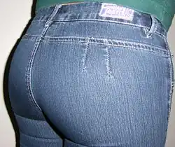 Levanta cola jeans (Spanish: jeans levanta cola,[1] or "butt-lifting jeans") are women's jeans that enhance the buttocks.[2] Originally developed in Colombia,[3] they are especially popular among Latina women. Producers include YMI Jeans and others.[4]