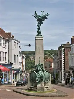 Lewes War Memorial is a war memorial at the top of School Hill in the centre of Lewes in East Sussex, prominently sited at the junction of High Street and Market Street. It commemorates 251 men from Lewes who died in the First World War, and 126 who died in the Second World War. It was unveiled in 1922 and became a listed building in 1985.