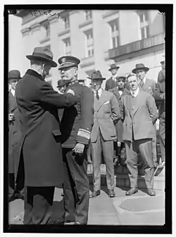 Following his graduation from RPI in 1916, he was commissioned a lieutenant junior grade in the Navy Civil Engineering Corps shortly after the United States entered World War I. In February 1918, he reported as the Civil Engineering Officer in charge of field construction at the Navy Yard in Washington, D.C., for one year. He then reported to the Republic of Haiti to serve as the Treaty Engineer.[2] In this billet, he served as Assistant to the Engineer Chief, and Director of Highways and Bridges, Harbor Development and Lighthouse Service.[3]