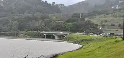 Lexington Reservoir is an artificial lake on the Los Gatos Creek near Los Gatos, California. The James J. Lenihan Dam, a 195 ft (59 m) high, 1,000 ft (300 m) thick earthen dam, forms the third-largest reservoir in Santa Clara County.[3][4]