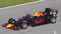 In Monza, Lawson qualified second alongside Doohan.[134] He had an average start in the sprint race, but fell to 11th. He was involved in several duels but powered through to finish in sixth place,[135] later promoted to fifth due to a post-race penalty from Richard Verschoor.[136] In the feature race, a slow start for Doohan saw Lawson take the lead, but during the safety car pitted a lap later than the likes of Daruvala and Armstrong. His day got worse as he was spun around by Vips, and sustained front wing damage.[137] He finished 13th, last of the runners.[138] Having qualified ninth in Abu Dhabi, Lawson took his fourth victory of the season in the sprint race, having conserved his tyres better than Verschoor, whom he overtook on lap 10.[139] In the feature race, he pitted early, and found himself in third place which was where he eventually finished.[140] Lawson ended third in the driver's championship with 149 points, whilst claiming four victories and six other podiums.[141]