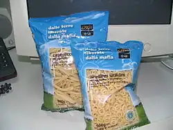 Libera's cooperatives produce various products using goods and lands confiscated from Mafia organizations or families all over Italy by applying Italian law 109/1996, which permits certain organizations to reuse goods confiscated from the mafia.