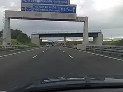 The Lichfield Canal (originally part of the Wyrley and Essington Canal) is currently being restored. Restoration was threatened by the construction of the M6 Toll motorway around the north of Birmingham, which cut across the canal's route. The cost of construction was shared, with Midland Expressway (the proprietors of the motorway) funding the foundations and the Lichfield & Hatherton Canals Restoration Trust fundraising to finance the superstructure.[2] The aqueduct was installed on 15 and 16 August 2003.[3]