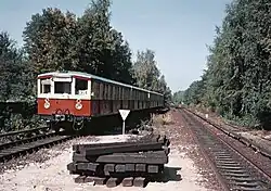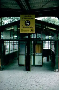 After the building of the Berlin Wall on 13 August 1961, no trains ran to the south from Lichtenrade and the station became a terminus. The level crossing barriers were dismantled, but the access tunnel retained its function. The two tracks ended at buffer stops in front of Bahnhofstrasse. The Lrd signalbox at the northern end of the station was shut down in 1977–78 and only one platform track was used from then on.