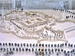 In this model of the 1909 Valencian exhibition, the large extent of this fountain (at top) can be seen