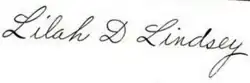 Lilah Denton Lindsey (October 21, 1860 – December 22, 1943) was a Native American philanthropist, civic leader, women's community organizer, temperance worker, and teacher.[1] She was the first Muscogee woman to earn a college degree.[2][3] She led numerous civic organizations and served as president of the Indian Territory Woman's Christian Temperance Union (WCTU).
