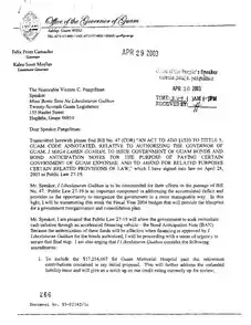 - ^ PL 27-19 had the matter of the bonds as its raison d'être and began life as Bill 47 of 2003 in the Guam Legislature.[2]: 1