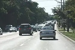 Lincolnshire lies on three arterial roads: Illinois Route 22, which is known as Half Day Road in this area; Milwaukee Avenue, which appears as Illinois Route 21/U.S. Route 45; and Aptakisic Road, which meets Milwaukee in the southern region of Lincolnshire. Lincolnshire shares its eastern border with the village of Bannockburn at Interstate 94 (where it is a portion of the Tri-State Tollway). Route 22 crosses the Des Plaines River before bridging Bannockburn and Lincolnshire by arching over Interstate Highway 94.[20]