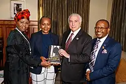 Zulu (far left) with Ndileka Mandela, Brazilian President Michel Temer, and Sello Hatang in July 2018
