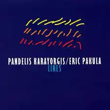 Lines is an album by jazz pianist Pandelis Karayorgis and alto saxophonist Eric Pakula, which was recorded in 1995 and released on Accurate. They are joined by bassists Nate McBride and Jonathan Robinson and drummers John McLellan and Eric Rosenthal in various combinations, playing compositions by Lennie Tristano, Lee Konitz, Warne Marsh and Ted Brown, along with some originals.[1]