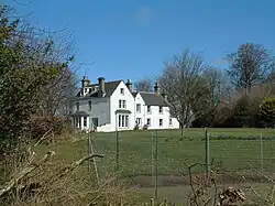 Lingo House, the seat of the ancient estate, is located about halfway between St. Andrews and Pittenweem, situated about a mile to the north of the B940 road, approximately 2 miles east of its junction with the A915 (St. Andrews to Largo).[5] An 1893 advertisement offering Lingo House for lease published in The [Glasgow] Herald newspaper described the house as lying within 4 miles of Mount Melville railway station and about 6 miles from St. Andrews, containing a dining room, drawing room, business room, four bedrooms, two dressing rooms, a kitchen, scullery, and servants' accommodation, with stables, a coach-house, and a large garden on the grounds.[6] Lingo House at Historic Environment Scotland