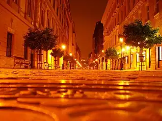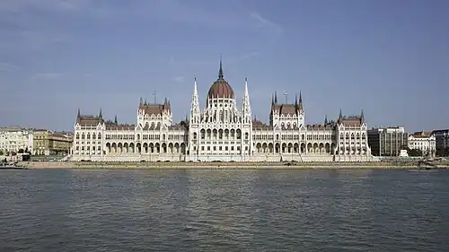 Lipótváros (German: Leopoldstadt, English: Leopold Town) is a traditional neighbourhood in the city centre of Budapest, named after King Leopold II.[1] It is one of the two neighbourhoods of District V, the other one being Inner City (Belváros), which is the old town of Pest. Lipótváros was established in the early 19th century, and became the political and financial centre of Hungary in the early 20th century when the Parliament was built on Kossuth Square. Many ministries followed in the later decades. After the 1989 change, Lipótváros gradually again became the business centre of Budapest with many banks and office buildings. The neighbourhood is rich in listed historic buildings and landmarks.