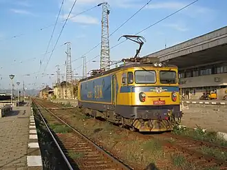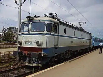 The electric locomotives employed by Romanian Railways-CFR and built by Electroputere Craiova are known as EA-type and were originally based on the license of the Swedish company ASEA.[20] All are built for standard gauge (1435 mm) and run using a catenary wire at 50 Hz 25 kV AC. Older electric locomotives are painted in grey livery, while modernised (post-1999) rolling stock use red livery.[21][22]