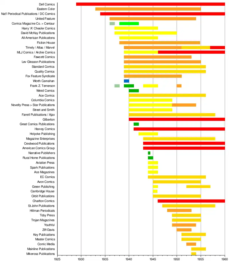 Visual timeline of Golden Age comics publishers