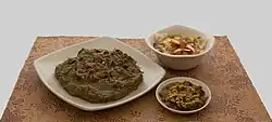 Khoresh e alu-esfenaj: Stewed prunes, spinach, and meat.[27][28]
