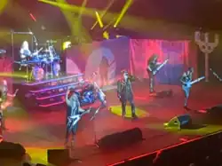 (left to right) K. K. Downing, Scott Travis (on drums), Tim "Ripper" Owens and Glenn Tipton (Ian Hill not shown)