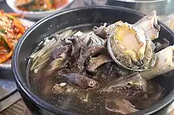 - Jeonbokjjim (전복찜), made with abalone marinated in a mixture of ganjang (Korean soy sauce) and cheongju (rice wine)