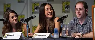 Lyndsy Fonseca, Maggie Q, and Craig Silverstein at a panel for the television series Nikita at San Diego Comic-Con in July 2010.