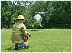 Penn Hills Fire Department firefighters landing a medical helicopter