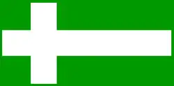 The flag is quautered by a white cross, with two lower rectangles in red and the two upper rectangles in blue with, the upper left of which bears a white five-pointed star. According to Puerto Rican poet Luis Lloréns Torres, the white cross on it stands for the yearning for homeland redemption; the red squares, the blood poured by the heroes of the rebellion and the white star in the blue solitude square, stands for liberty and freedom.[9] The revolutionary Lares flag was used in the short-lived rebellion against Spain in what became known as Grito de Lares (The Cry of Lares).[10]