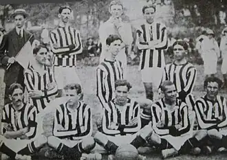 Santos FC is a football club based in Santos,[1] that competes in the Campeonato Paulista, [2] São Paulo's state league, and the Campeonato Brasileiro Série A or Brasileirão,[3] Brazil's national league. The club was founded in 1912 by the initiative of three sports enthusiasts from Santos by the names of Raimundo Marques, Mário Ferraz de Campos, and Argemiro de Souza Júnior, and played its first friendly match on 23 June 1912.[4] Initially Santos played against other local clubs in the city and state championships, but in 1959 the club became one of the founding members of the Taça Brasil, Brazil's first truly national league.[5] As of 2022, Santos was one of only three clubs never to have been relegated from the top level of Brazilian football, the others being São Paulo, Flamengo. [6] Until 2023, where they suffered their first relegation of its history.