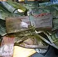 Huế | Dumpling | Flat rice flour dumpling from Huế stuffed with minced pork and mushroom, and seasoned with pepper and spices; wrapped in a banana leaf[2] |