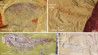 14. ^ Du, Kun-sheng; Ortega-Hernández, Javier; Yang, Jie; Zhang, Xi-guang (June 2019). "A soft-bodied euarthropod from the early Cambrian Xiaoshiba Lagerstätte of China supports a new clade of basal artiopodans with dorsal ecdysial sutures". Cladistics. 35 (3): 269–281. doi:10.1111/cla.12344. PMID 34622993.