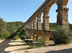 The unique Tokaanu Tailrace Bridge, a combined road and water bridge crosses a power canal of the Tongariro Power Scheme in the North Island of New Zealand. State Highway 41 travels along the top of this bridge, with the Tokaanu Stream, an important trout spawning stream, running under the road surface.