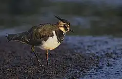 Bustards are large terrestrial birds mainly associated with dry open country and steppes in the Old World. They are omnivorous and nest on the ground. They walk steadily on strong legs and big toes, pecking for food as they go. They have long broad wings with "fingered" wingtips and striking patterns in flight. Many have interesting mating displays.