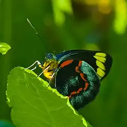 Black Jezebel (Delias nigrina) Waikaia, Southland January 2010[6] Unknown/wind current