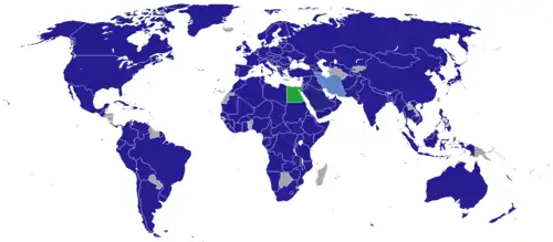 This is a list of diplomatic missions in Egypt. At present, the capital city of Cairo hosts 139 embassies. Several other countries have ambassadors accredited from other regional capitals. Honorary consulates are excluded from this listing.