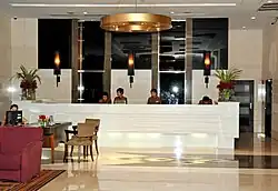 During the Vietnam War, Thailand saw an influx of American soldiers on R&R breaks, which contributed to the growth of the country's tourism during the 1950s and 1960s, causing a growth in the number of hotels designed for Westerners. These hotels were built in post-modern architecture, such as the Siam InterContinental Hotel.[9] In Pattaya, the influx transformed the town into a seaside resort, beginning in the 1950s with American soldiers arriving on R&R from Korat. In 1965, Pattaya opened its first major hotel, the Nipa Lodge. After the U.S. was allowed to use U-Tapao airport south of Pattaya in the Vietnam War, the demand for hotels increased as the number of tourists increased. By the mid-1970s, Pattaya operated 2,600 hotel rooms.[10]