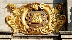 House of the Corporation of Carpenters | Former property of the Corporation of Carpenters, whose tools decorate the façade since the 15th century. Built in stone in 1644, partly spared by the bombardment, it was rebuilt (from the third floor up) and restored (lower levels and interior) in 1697 by the carpenter Antoine Pastorana.[9] The sculptures from this reconstruction are the work of Peter van Dievoet and Laurent Merkaert.[10] The façade was restored in 1854–1858 by the City of Brussels' architect, Victor Jamaer, and again in 1907–1913 by the architect Jean Segers.[9] Nowadays, a Starbucks coffee shop is located on the ground floor of this building. |