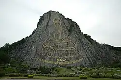 Silhouette of Buddha on the side of Khao Chichan, Chonburi.