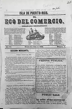 El Eco del Comercio: semanario enciclopédico[51] Ponce[52] 1861 (Jun)[52] 1867 (c.)[51][53] Encyclopedic Weekly; Lázaro Martínez, editor.[52]