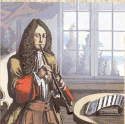 Oboist – etching and print by Johann Christoph Weigel (1661–1726)