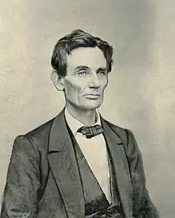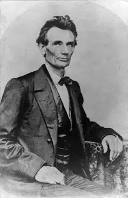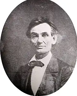 Lincoln immediately prior to his Senate nomination. The original negative was burned in the Great Chicago Fire.[11]