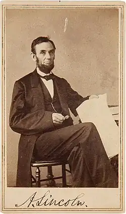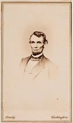 122. ^ "Lot - Abraham Lincoln CDV by Mathew Brady". www.universityarchives.com. Retrieved February 19, 2025.