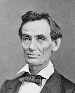 Abraham Lincoln was "the most photographed American of the 19th century".[1] There are at least 130 known photographs of Lincoln, and he was photographed multiple times by the American Civil War photographers Mathew Brady and Alexander Gardner who were officially appointed to document the war.[2] In reference to Brady's 1860 photograph, Lincoln said, “Brady and the Cooper Institute made me President.”[3] John George Nicolay, who was Lincoln's private secretary when Lincoln became President, is quoted as saying:[4] "Lincoln's features were the despair of every artist who undertook his portrait. ... There are many pictures of Lincoln; there is no portrait of him."