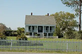 Examples of slave housing can be found on many of the extant plantation complexes. Historically housing for enslaved people on Louisiana plantations (prior to the reconstruction era), featured cabins consisting of two rooms, with one family in each room.[16] After the American Civil War in 1865, the United States of America had abolished slavery, and the architecture changed for laborers on plantations to include more space, one example of this is found at the Allendale Plantation in Port Allen.[16]