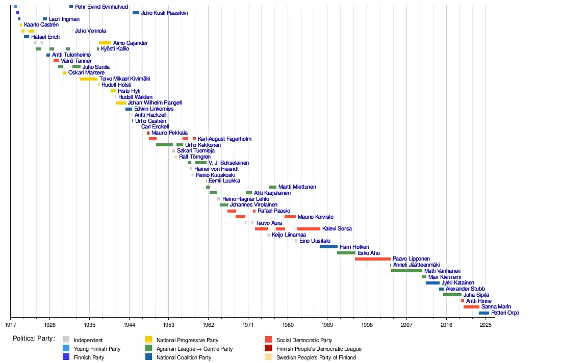 - ^ "Governments in chronological order". Finnish government (Valtioneuvosto). Retrieved 27 March 2017.