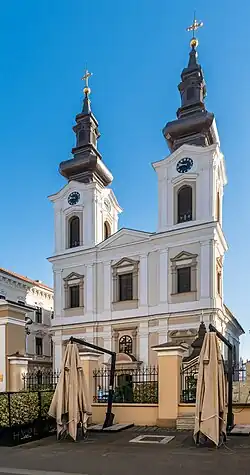 This is a list of religious buildings in the western Romanian city of Timișoara. The majority are Romanian Orthodox churches—40 in total—organized into 27 parishes. There are also 13 Roman Catholic churches, five Greek Catholic churches, three Serbian Orthodox churches, three Reformed churches, one Lutheran church, and one Ukrainian Orthodox church, as well as three synagogues (two of them functional), most of which were built during the Austro-Hungarian period.[1]