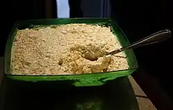 United States | Fruit salad | Made from rice, crushed pineapple, egg, sugar, vinegar, flour and whipped cream.[16] It may be decorated with maraschino cherries.[17] |