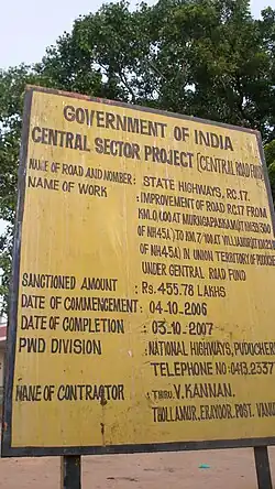 - ^ Planning and Research Department. "Roads & Bridges" (PDF). Draft Annual Plan 2006–07. Government of Pudicherry. pp. 259–294.