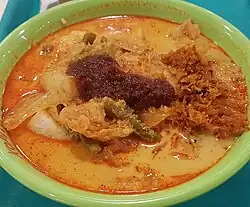 | Bubur ayam[41] | Indonesia | A porridge of rice and shredded chicken, served with soy sauce, spices, fried shallots, cakwee (fried dough), krupuk (a type of cracker), and sambal (a hot sauce); often eaten for breakfast[42] | |