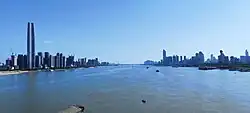 Wuchang District, featuring Wuhan Greenland Center under construction on the left of the Yangtze